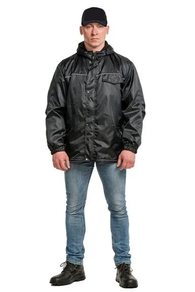 Куртка с застежкой на молнию, с капюшоном, с притачными манжетами, собранными на резинку.