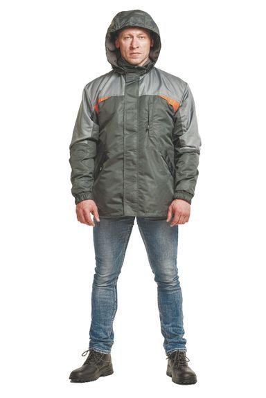 Куртка с застежкой на 2-замковую молнию и контактную ленту, со съемным капюшоном.