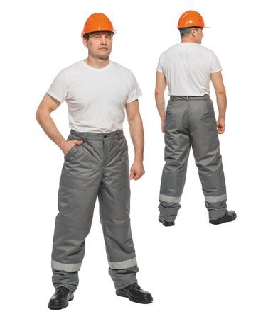 С притачным поясом, шлевками и эластичной тесьмой, боковыми карманами, наколенниками. СВП 5 см по низу брюк.