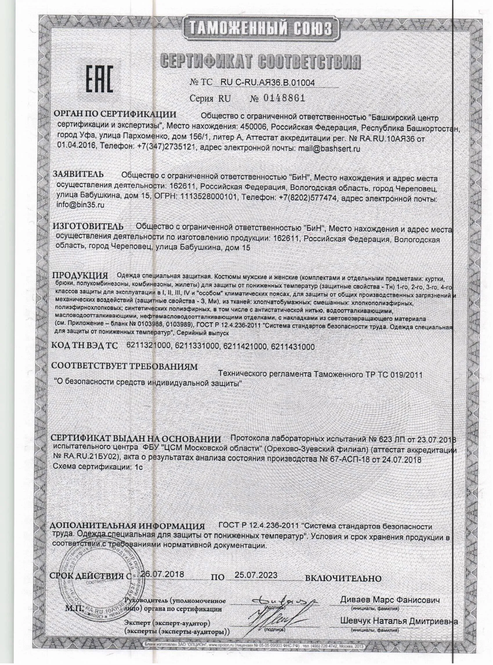 - г. Череповец, ул. Бабушкина д.15, магазин спецодежды "БиН".