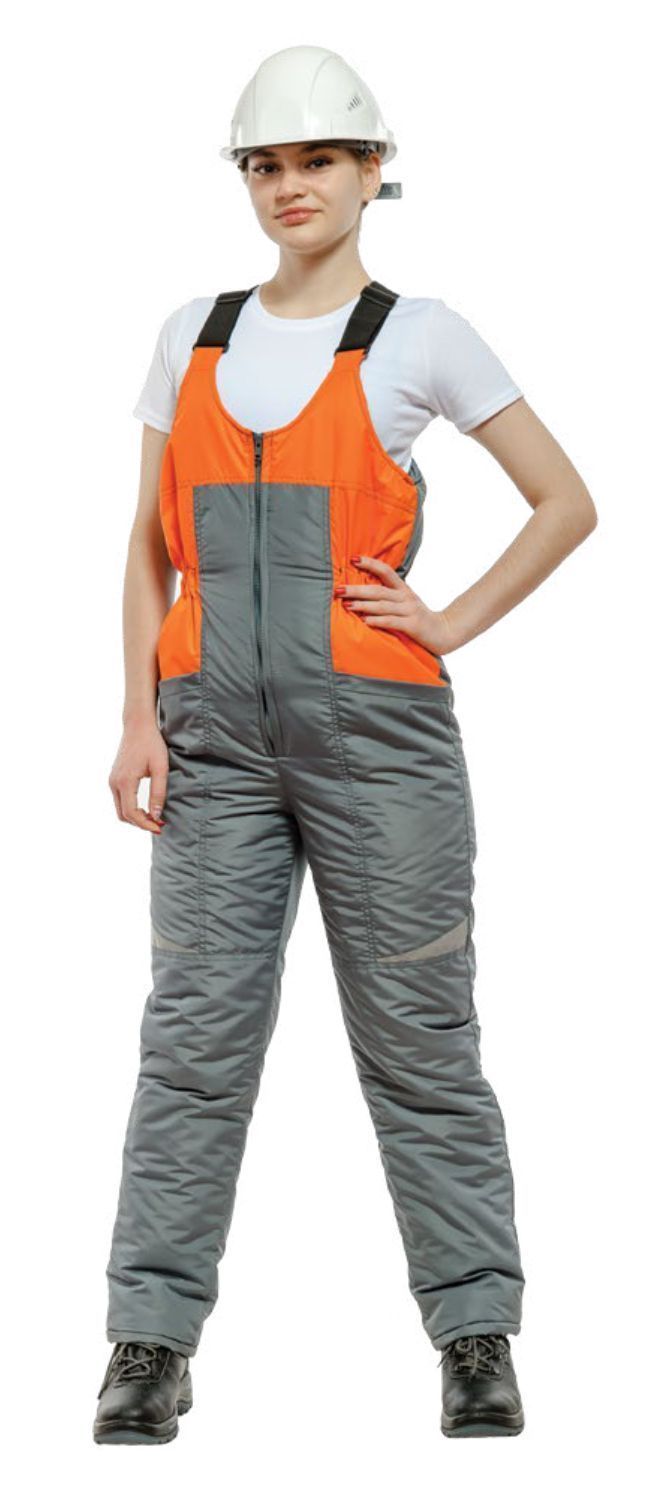 Полукомбинезон с центральной застежкой на молнию, боковыми карманами. Прилегание по линии талии при помощи эластичной тесьмы,бретели с регулировкой. Фигурные СВ полосы на передних половинках.